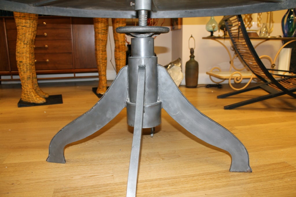 Galvanized Zinc Metal Top Dining Table with Wood Base at ... from a.1stdibscdn.com The table can be combined with any chairs from the mix and match collection for a complete look. 3.5 out of 5 stars with 26 ratings. Acme furniture kaylia dining table. Create a modern industrial look to your dining space or kitchen area with this rectangular dining table in a stylish gray finish, supported by sleek track chrome metal legs with an x base design. One of our most popular base designs is the sabrina table legs. Available in gun metal, red copper, shiny silver, and white, it's made of galvanized steel with a powder coat finish. 161 collection industrial modern 24 in. Monarch 48 metal dining table in gray by monarch (2) $254.